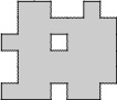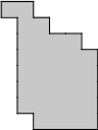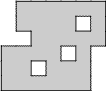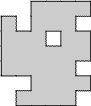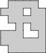 Using only horizontal and vertical cuts, divide each region into 4 identical pieces consisting of 8 unit squares. The pieces may be rotated and/or reflected.