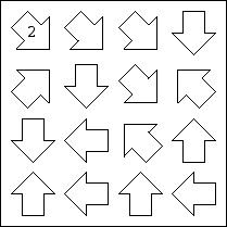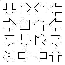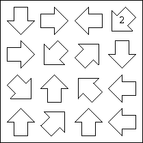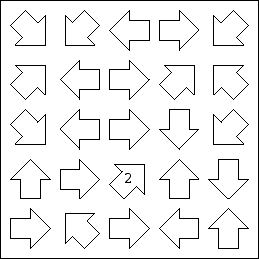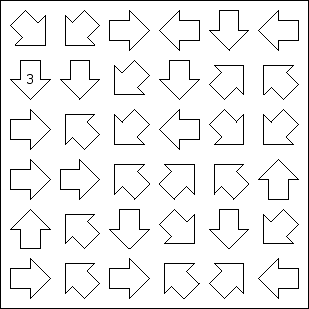 Place a number in each arrow. The number in each arrow should be equal to the number of different numbers it points to.