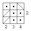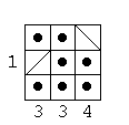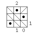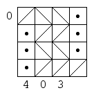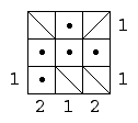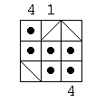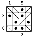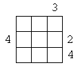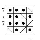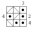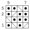 Each square in the grids below contains either a person lost in the hall of mirrors, or a diagonal mirror. The numbers at the sides of the square indicate how many people can be seen from that location when looking either horizontally or vertically. Here's an example:
